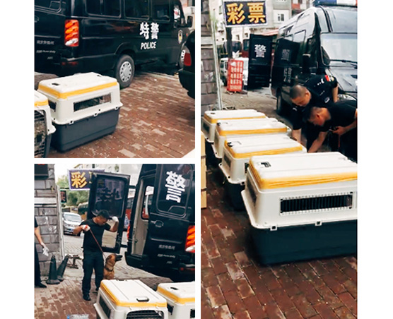 英國(guó)斗牛犬(美國(guó)——中國(guó))因?yàn)槌赡暧⑴O奶?**怕中暑,專(zhuān)業(yè)的寵物保姆給寶寶航空箱放了冷凍礦泉水瓶來(lái)給它降溫。即使長(zhǎng)途運(yùn)輸,寶寶狀態(tài)非常好,在辦公室等待主人接他回家,主人非常滿(mǎn)意,感恩